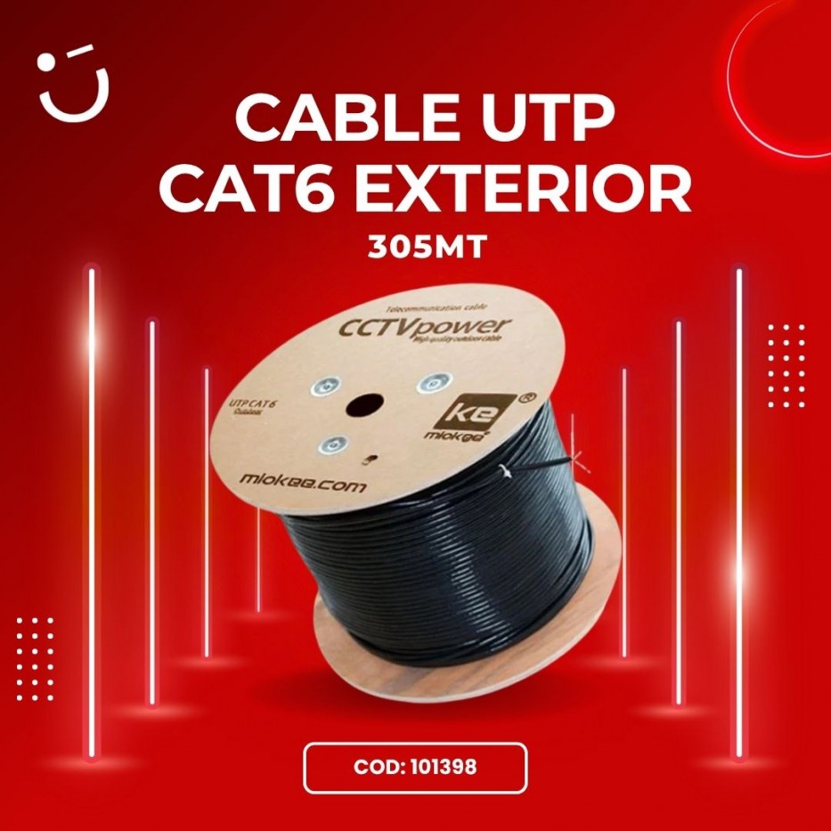 El Cable UTP Cat 6 Exterior MIOKEE es la opción ideal para quienes buscan una conexión estable, veloz y segura en entornos al aire libre. Diseñado para soportar condiciones climáticas exigentes, su chaqueta resistente a rayos UV garantiza durabilidad ante la exposición al sol, la nieve o el hielo. Gracias a su construcción profesional de 23 AWG y sus 4 pares trenzados, ofrece un rendimiento de categoría superior, asegurando una transmisión de datos fluida y sin interferencias. Perfecto para proyectos residenciales, comerciales o industriales donde la confiabilidad y la resistencia son esenciales.