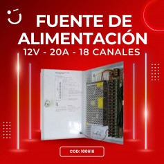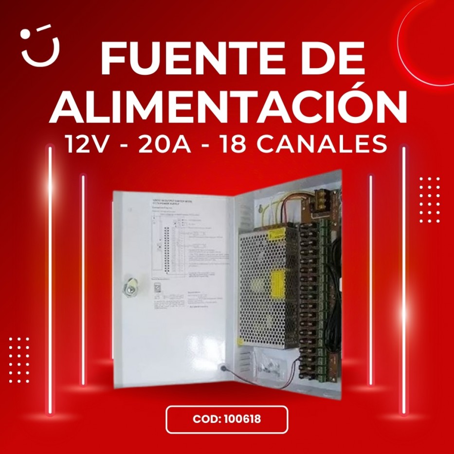 La Fuente de Alimentación Centralizada 12V 20A de 18 Canales es una solución profesional diseñada para garantizar una alimentación estable, segura y organizada en sistemas de videovigilancia (CCTV) y control de acceso. Su diseño en caja metálica con cerradura ofrece protección física y eléctrica, convirtiéndola en un componente clave para proyectos que requieren alimentar múltiples dispositivos desde un solo punto. Gracias a su capacidad de 20 amperios y sus 18 salidas independientes, esta fuente permite distribuir energía de forma eficiente a varias cámaras o equipos, mejorando la gestión del cableado y reduciendo riesgos eléctricos. Además, incorpora sistemas de autoprotección y compatibilidad con batería de respaldo en plomo de 12V, asegurando continuidad operativa ante fallos de energía.