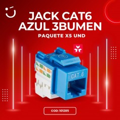 El Jack CAT6 3BUMEN en color azul, presentado en bolsa de 5 unidades, es un componente esencial para el montaje profesional de redes estructuradas de datos. Diseñado bajo el estándar Categoría 6 – Clase E, este keystone jack UTP permite una transmisión estable y eficiente en redes 10/100/1000 Mbps, garantizando alto rendimiento, baja pérdida de señal y una infraestructura ordenada y confiable.